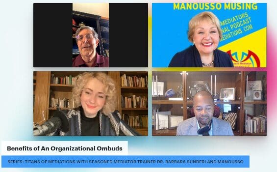 Dr. Barbara Manousso of https://manousso.us and her guest Dr. Neil Katz of https://neilkatzconsulting.com speak with Mac Pierre-Louis & Natalia Olowska-Czajka of https://olowskapierre.com about the ombuds and their role in conflict solving.