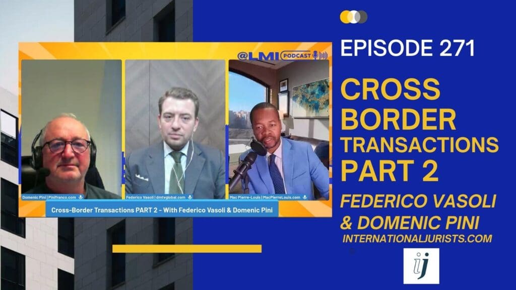 In this follow-up PART 2 episode of the Lawyers and Mediators International show, host Mac Pierre-Louis discusses cross-border transactions and disputes with legal experts Federico Vasoli of DmtvGlobal.com and Domenic Pini of PiniFranco.com. See PART 1 below.