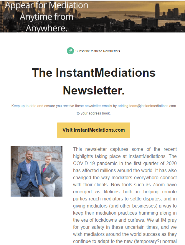 May 2020 Newsletter May 3, 2020 Mac-Arthur Pierre-Louis NEWS & EVENTS https://mailchi.mp/instantmediations/may2020newsletter Share on Facebook Share on Twitter Share on LinkedIn Previous Next Author: Mac-Arthur Pierre-Louis Website: http://macpierrelouis.com Attorney, Mediator, Author, Licensed in TX & FL. Host of the @LMIPodcast. Developer of Lawyers Mediators International & InstantMediators.com Platforms. Social links at use1.link/macpierrelouis