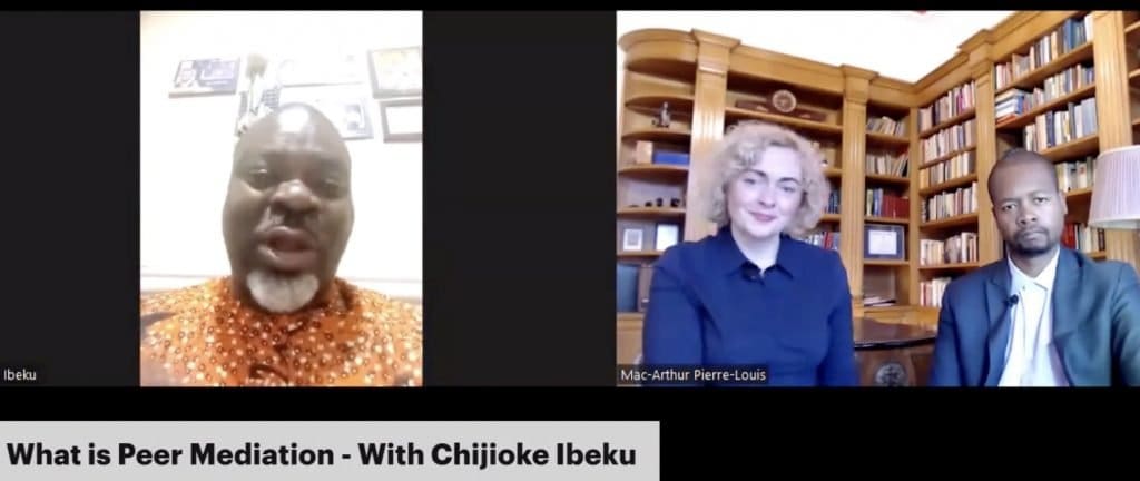 Chijioke Ibeku (to be found here: https://www.linkedin.com/in/chijioke-ibeku-631947192/) is talking with Mac and Natalia of OlowskaPierre.com on peer mediation in Nigeria and Africa in general. He is showing the benefits of introducing peer mediation programs into the school system for pupils as young as 7 years of age. He explains why peer mediation proves to be a good way to help overcome barriers of ethnicity, culture or heated emotions.